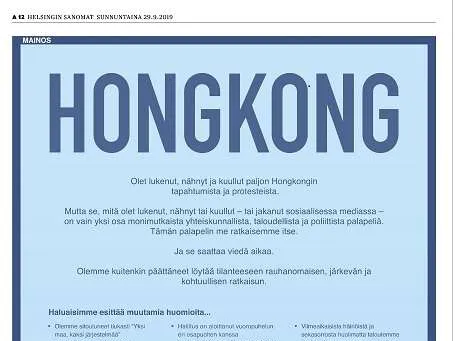 Onko Kiinan Kansantasavallan Mainos Helsingin Sanomissa